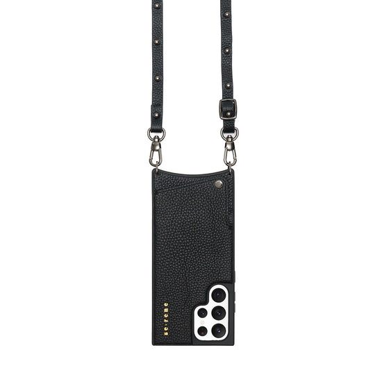 Genuine pebble leather phone case and plain strap. Pewter hardware.