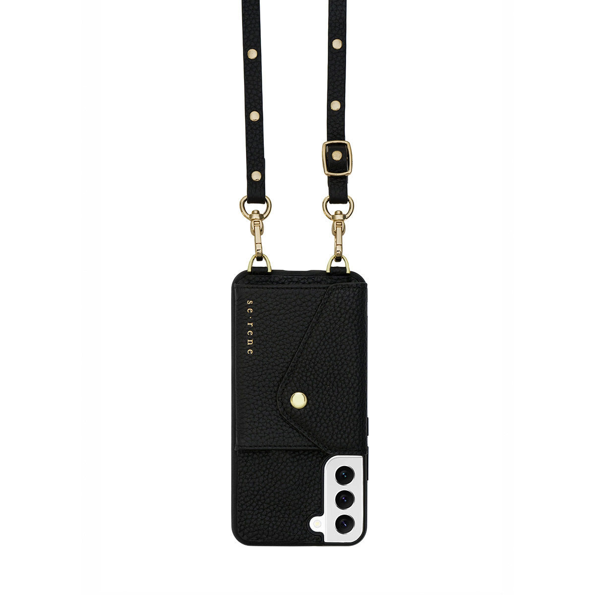 Genuine pebble leather phone case and plain strap. Gold hardware.