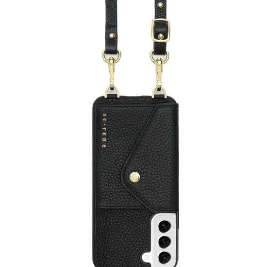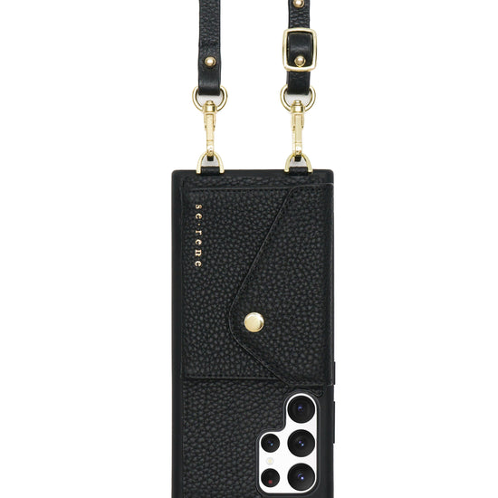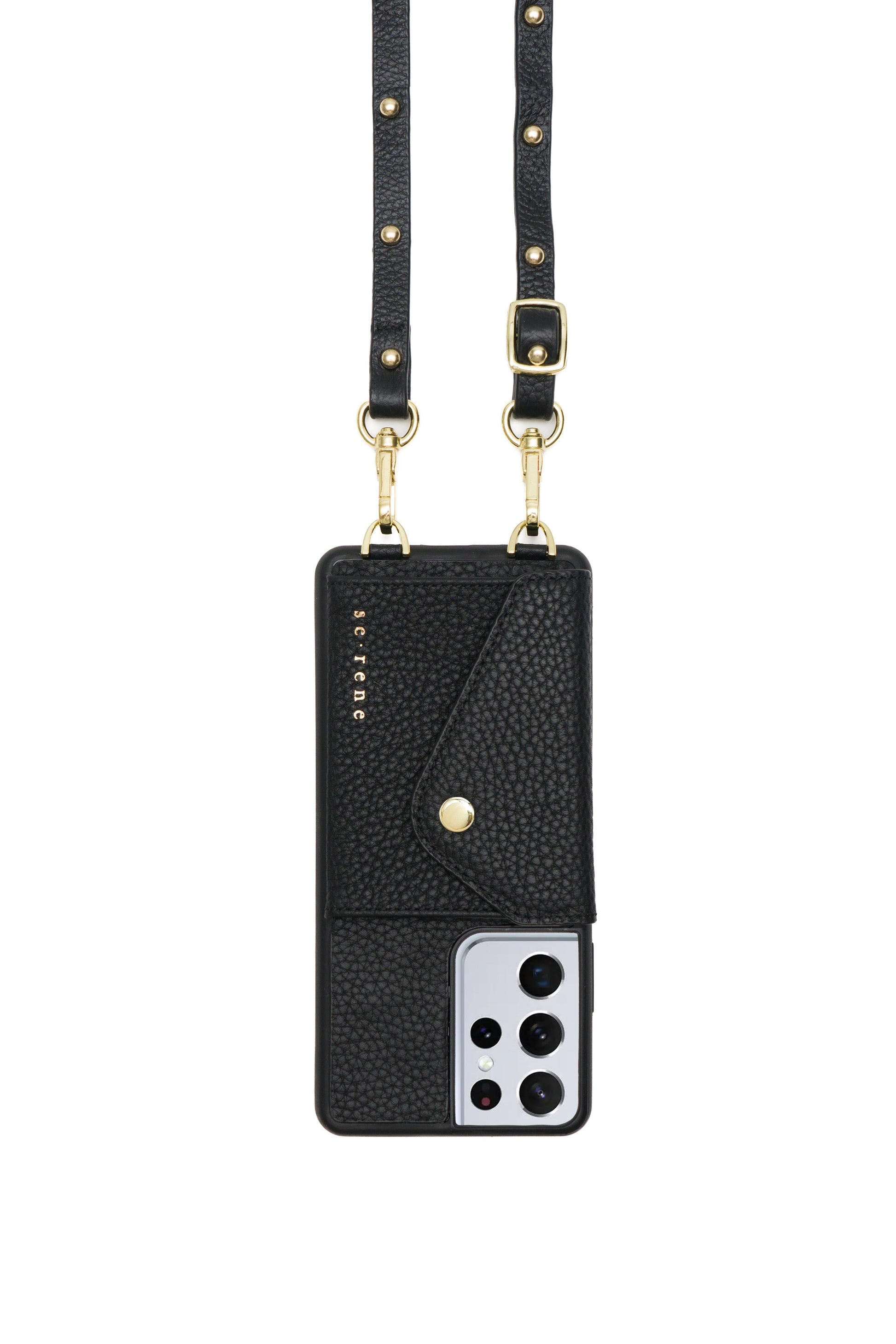 Genuine pebble leather phone case and plain strap. Gold hardware.