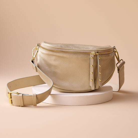 Gold Crossbody Bag with Leather Strap